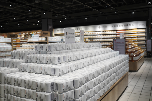 在品质升级层面,门店专门设立了胖东来自有品牌专区,集中展示DL精酿啤酒、DL燕麦片、DL复合果汁、DL自由爱白酒等爆火单品;同步打造永辉自有品牌矩阵,涵盖洗衣液、黑松露饼干等生活刚需品。尤其亮眼的是永辉与伊利独家定制的鲜牛奶,凭借欧盟标准生牛乳原料与7.9的亲民定价,精准满足福州家庭日常消费场景,7月17日在永辉超市全国门店上市4天销售额即破100万元,正加速迈向“亿元级单品”里程碑。
