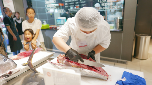 服务升级是本次调改的重中之重,处处体现着对厦门这座旅游与宜居并重滨海城市的细腻洞察。在食百区配备放大镜,方便顾客查看商品细节;连卷袋旁配备湿手器,方便顾客快速打开袋子;生鲜区服务更是周到,肉禽区提供切丝、剥皮、剔骨等多项定制服务,水产区为顾客提供帝王蟹等海鲜的清洗打氧服务,满足顾客多样化的需求。